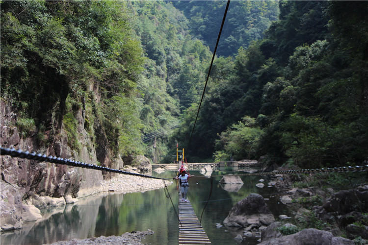 走過小木塊橋,小胖的親,你可要悠著點喲,好在這里有繩索測試過,所以個個都是穩穩的走過每塊小木塊橋。